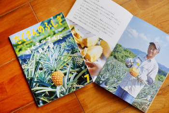 石垣島嵩田地区を舞台にしたパイナップルをめぐる物語を写真絵本としてまとめました。パイナップルの栽培と沖縄への移入に関して、小学生から学べる内容になっています。